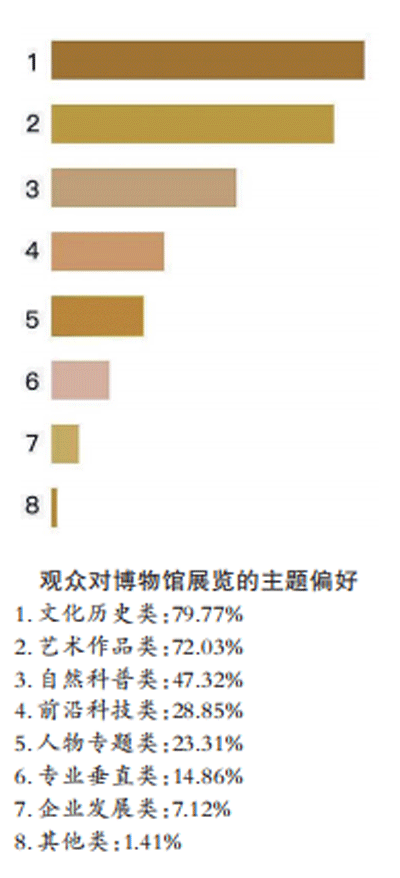 观展呈现社交化与日常审美化特征。调研显示,博物馆进入数智化阶段,受众呈现出较稳定的参观频率和习惯。其中27.82%的受访者表示每半年会参观一次博物馆,76.41%的人表示每次停留时间不少于3小时。对于参观展览,他们普遍偏爱与家人朋友结伴而行。但无论是独自沉浸、亲友共赏,还是亲子时光,他们都认为博物馆是社交打卡、促进交流、加深情感的优选之地,其中文化历史类展览(79.77%)和艺术作品类展览(72.03%)最受欢迎。87.29%的受访者表示增长见识、拓宽认知是他们参观的主要目的,67.78%的受访者对逛博物馆有提高审美品位、获得美育熏陶的期待。因此,逛博物馆已成为大众满足其社交需求的一种生活方式,他们乐于在博物馆中驻足停留。这不仅反映出受众对博物馆的热爱,也见证了博物馆对促进人们情感联结的独特价值。