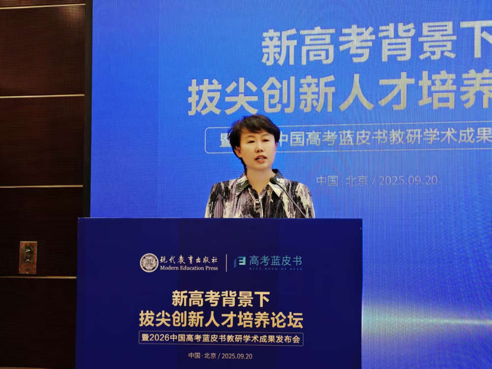 9月20日,由现代教育出版社主办的“新高考背景下的拔尖创新人才培养论坛暨2026中国高考蓝皮书教研学术成果发布会”在北京大学举办。本次活动以“立足中国式现代化,构建拔尖创新人才培养新生态”为主题,汇聚教育领域专家学者、知名校长及一线教育工作者,深入解读高考改革新趋势,分享拔尖创新人才培养的理论成果与实践经验。