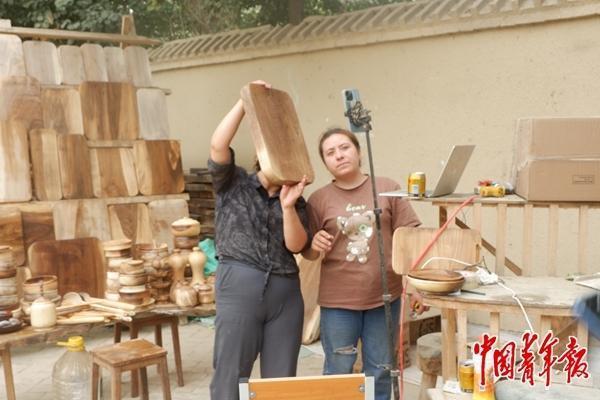 在依尔夏提看来,“非遗好物”重要的是要“能用得上”。如今,“和核木睦”每月的销售额可达二三十万元,甚至三四十万元,以菜板、木碗等为“销冠”。此外,质量也很重要,核桃木工艺品虽然看上去较为简单,制作周期却很长,需要一年至一年半。依尔夏提介绍,想要制作核桃木工艺品,需要先将木材切成段,制成毛坯板,而后放置在自然环境中阴干至少一年。在这个过程中,木头由于含水率逐渐下降,可能会开裂变形。只有没有变形开裂的才能被用于制作成品,由此保证材料的稳定性。