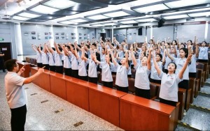 分指挥唐以萱透露:“在集训期间,我们每天要进行12小时的封闭体能和专业训练,挥拍两万多次,真是汗如雨下,但我们也毫无怨言。持续的练习,让我们练就了肌肉记忆。” 现在只要一听见歌曲响起,唐以萱的两只胳膊就会条件反射地往上抬,跟着节奏打拍子。