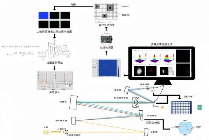 团队在研发过程中突破三大技术瓶颈:一是提出双胶合棱镜设计方法,显著提升色散均匀性,使像面利用率提高24.5%,有效降低波长误判风险;二是开发微反射镜智能控制策略,结合孔径编码与神经网络技术,将全谱采集时间压缩至1秒以内;三是实现全自动标定系统,全波长标定精度达0.012nm,大幅提升仪器的稳定性。