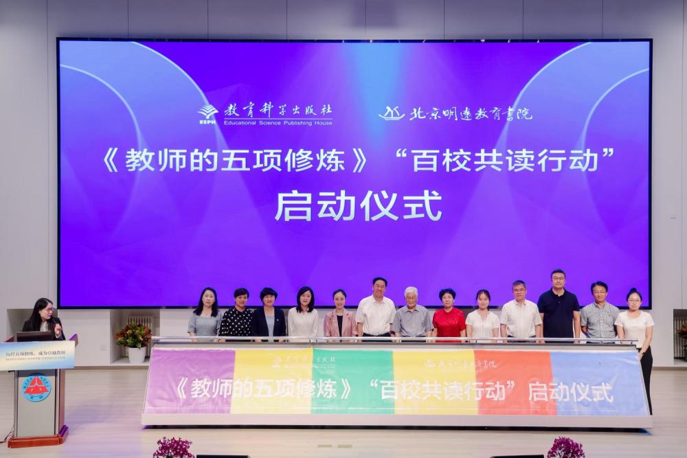 9月10日,由教育科学出版社与北京明远教育书院联合主办、北京市第八中学承办的《教师的五项修炼》新书发布暨“百校共读行动”启动会在京举行。本书两位作者,北京师范大学资深教授顾明远和资深教育媒体人刘华蓉,教育科学出版社社长郑豪杰、副总编辑孙袁华,北京明远教育书院副院长马健生、滕珺,北京市西城区教委副主任王燕民、北京市第八中学校长王俊成、北京市第八中学党委书记张晓梅,和江苏省教科院研究员成尚荣、北京师范大学教授褚宏启、北京师范大学国际与比较教育研究院副院长高益民、中国教育学会副会长王欢等专家学者出席会议。来自30余所中小学校、幼儿园的近300位校长和教师现场参加活动。