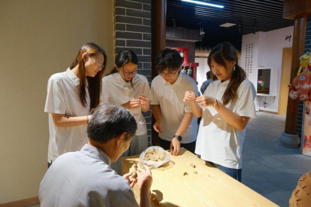 实践团与山东枣庄市领导专家进行座谈,深入探讨淮海与鲁南地区抗战历史与红色文化传承;在台儿庄大战纪念馆内感受台儿庄大战的恢弘壮烈;走进枣庄市文化馆,成员们动手制作木版年画、枣庄泥塑和陶艺,并参与皮影戏表演,体验非遗文化的独特魅力。