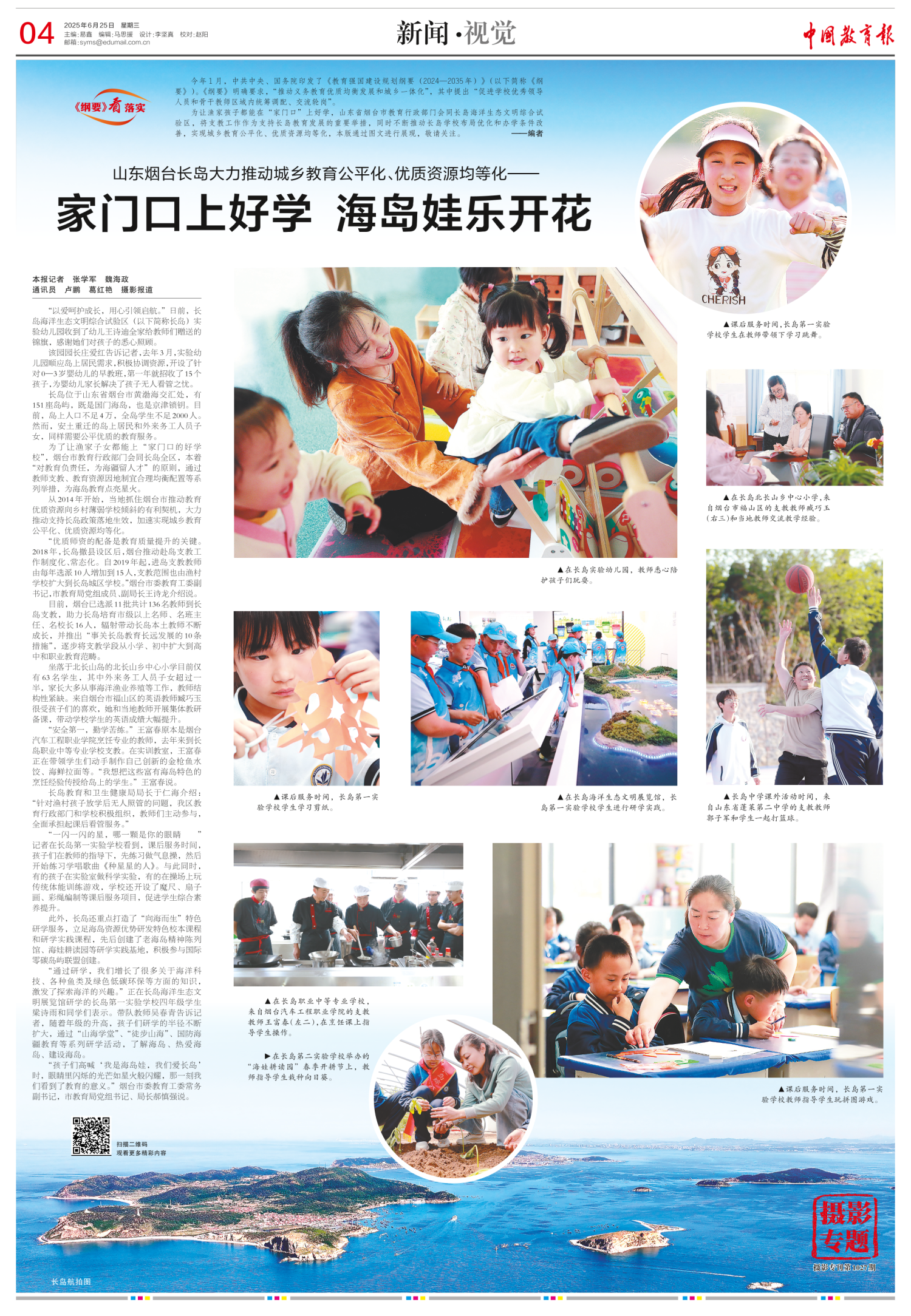 为让渔家孩子都能在“家门口”上好学,山东省烟台市教育行政部门会同长岛海洋生态文明综合试验区,将支教工作作为支持长岛教育发展的重要举措,同时不断推动长岛学校布局优化和办学条件改善,实现城乡教育公平化、优质资源均等化,本版通过图文进行展现,敬请关注。——编者