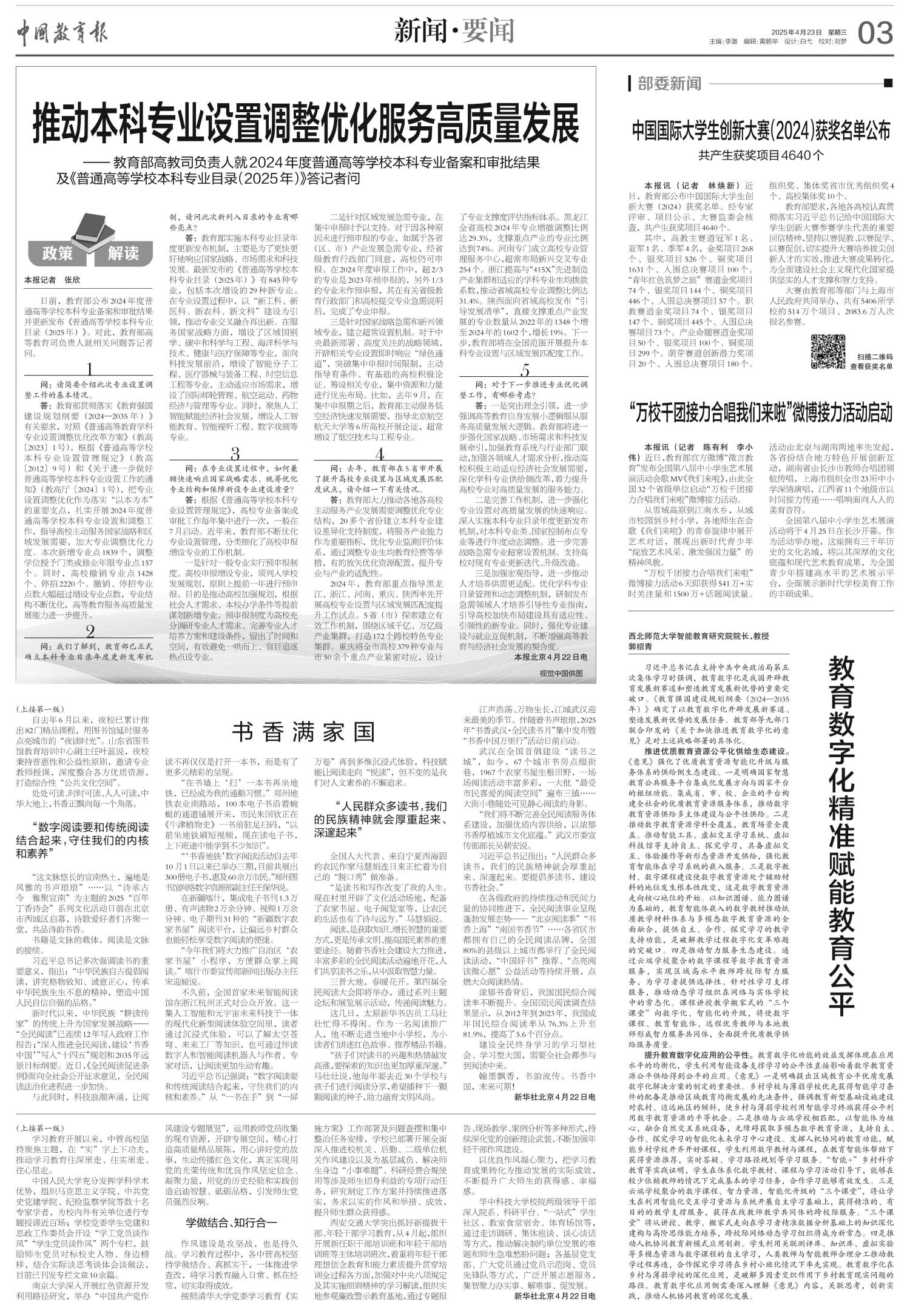 习近平总书记在主持中共中央政治局第五次集体学习时强调,教育数字化是我国开辟教育发展新赛道和塑造教育发展新优势的重要突破口。《教育强国建设规划纲要(2024—2035年)》确定了以教育数字化开辟发展新赛道、塑造发展新优势的发展任务。教育部等九部门联合印发的《关于加快推进教育数字化的意见》是对上述战略部署的具体化。